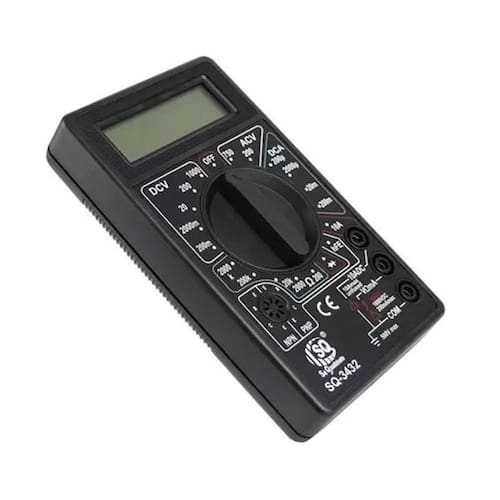 Multímetro digital teste de voltagem 127v e 220v Multímetro digital portátil 12cm - sq - só qualidade Especificações: -visor digital lcd com ajuste -alimentação: bateria de 9v - Peso: 150g Escalas: - voltagem dc: 200 mv, 2v, 20v, 200v e 1000v- Voltagem ac: 200mv, 2 v, 200v e 750v- Corrente dc e ac: 2ma, 20ma, 200ma e 20a Resistência: 200, 2k, 20k, 200k, 2m, 20m e 200m ohms Capacitância - 20nf, 200nf, 2uf, 20uf e 200uf funções: Escala de medida de tensão contínua volts Escala de medida de resistência ohms Escala para desdes diodos -escala para transitores Escala de medida de tensão alternada volta Escala para medida de corrente Medidas 12 cm comprimento 2,5 altura Sq-3432 Ean: 7899441523789