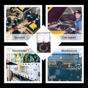 Características destacadas 1. Tensão AC/DC medida, corrente DC, resistência à corrente elétrica. 2. Operação do botão rotativo, display analógico. Design portátil e prático atrás da estrutura de suporte. 3. Amplamente utilizado em fábricas, laboratórios escolares, hobbies domésticos, reparos de máquinas, etc. 4. Mostrador de alta definição com escrita clara, sem sombra, a leitura dos valores é fácil. Vem com o par a linha de cabos de teste codificados por cores. 5. A bobina de indução de alta sensibilidade permite induzir a passagem de corrente fraca. 6. Faixa de medição de várias faixas, várias opções de medição, escrita legível. A tração entre as pausas é forte, não escorrega. Veja menos