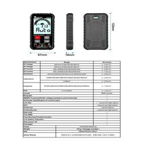 Este multímetro oferece uma variedade de funções importantes, como reconhecimento inteligente, aviso de desconexão do tubo de segurança, teste True RMS, teste de tensão AC/DC, teste de resistência, bipe liga/desliga, teste de frequência, teste de capacitância, teste de diodo, NCV tensão sem contato , live identificação da linha de incêndio e lead.