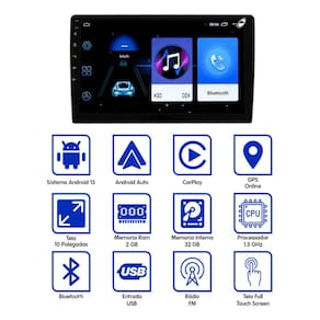 Leve mais conectividade, conforto e diversão para dentro do seu carro com a Central Multimídia. Com tela de 10 polegadas e suporte sem fio ao Android Auto e Apple CarPlay, você acessa seus apps favoritos, mapas, músicas e muito mais direto do painel. O sistema Bluetooth garante chamadas e músicas com segurança, enquanto o espelhamento de tela amplia sua liberdade ao volante. Prática, moderna e intuitiva a escolha certa para quem busca tecnologia no trânsito.