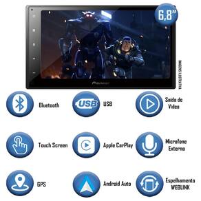 Com sua elegante tela touch screen capacitiva de 6.8 polegadas, você garante um design lindo e moderno no interior do seu carro com uma operação suave e intuitiva. Ela é compatível com as tecnologias Apple CarPlay e Android Auto oferendo em ambas a possibilidade de conexão com iPhone e smartphones Android via cabo USB ou sem fio para acessar com segurança e praticidade os aplicativos que te acompanham em todo lugar, como mapas, mensagens e chamadas telefônicas. Além disso, se preferir, você pode espelhar seu smartphone através do aplicativo Weblink Cast, que permite acesso ao YouTube, informações sobre o clima, calendário, entre outros, tanto para usuários de sistema iOS, quanto Android em um conjunto completo de conectividades para todos os momentos.