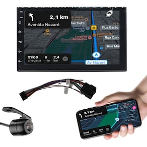 CONTEÚDO DA EMBALAGEM: - 01 Multimídia 7"; - 01 Câmera de Ré; - 02 Suportes; - 02 Cabos USB; - 01 Cabo de Câmera de Ré; - 01 Cabo para GPS Online; - Chicotes e acessórios de instalação da multimídia; - Manual de Instruções.