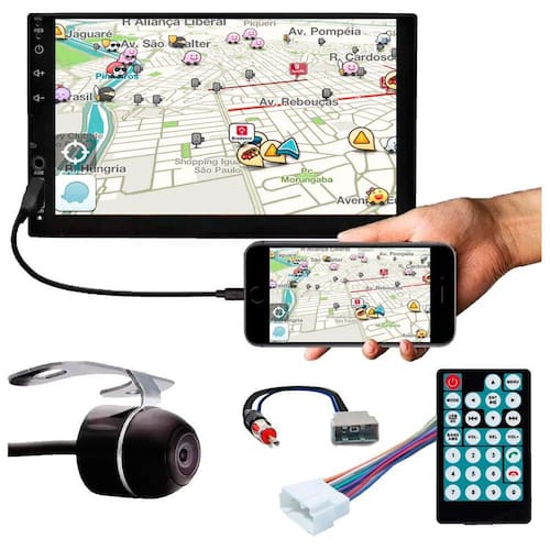 ESPECIFICAÇÕES TÉCNICAS: - Tela de 7" polegadas Touch Screen com resolução de 1024x600; - Sistema PAL / NTSC; - Compatível com RMVB, MPG4, DivX, AVI, MP3, MP4, MP5, MPEG, JPEG; - Troca de cores da luz do botões; - Conexões USB e Cartão SD; - Conexão com aparelhos celulares para ligações e músicas via Bluetooth; - Espelhamento Android (incompatível com celulares XI@0MI); - Espelhamento IOS (as versões de iPhone suportadas variam entre os modelos 6 a 11 - normal - e XR. Incompatível com os modelos X, XS e 11 Pro; - Compatível MP3, MP5, WMA; - Rádio FM com 18 memórias; - Compatível com telas e câmeras; - Potência de saída 50W x 4; - Saídas RCA; - Controle remoto; - Entrada para câmeras de estacionamento traseira; - 2 saídas RCA.