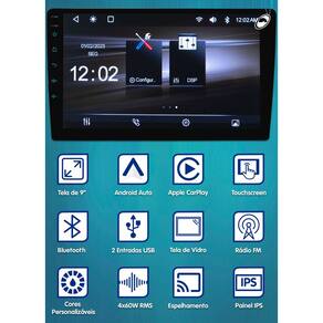 PRINCIPAIS CARACTERÍSTICAS: - Tela 9" Polegadas Full Touch; - Tela de Vidro; - Espelhamento de celular Android e IOS; - Função Android Auto e CarPlay conectividade com e sem fio - Bluetooth: ligação e reprodução de músicas; - Radio FM; - Resolução da imagem 1024x600; - Equalizador JAZZ/POP/CLASSIC/ROCK; - Potência 4x60W RMS; - 2 Entradas USB; - 1 Entrada para camera de ré; - 1 Saída de audio e vídeo; - 1 Entrada para microfone externo; - 1 Saída de Subwoofer; - 2 Fios SWC para comando de volante (Grava até 10 Funções); - Saída de Vídeo (quando a saída de vídeo para o encosto de cabeça, apenas o encosto de cabeça tem exibição de vídeo).