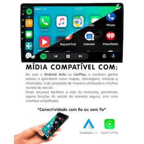 - Integração de Smartphones: Suporta integração de smartphones, como Apple CarPlay e Android Auto, para acesso a aplicativos e funções do telefone.