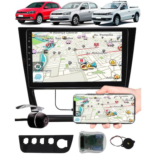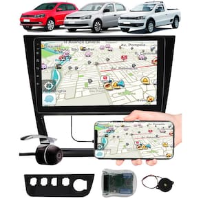 Multimídia 9" Polegadas Vw Gol Saveiro Voyage G6 Espelhamento USB Bluetooth + Moldura Painel + Câmera de Ré + Interface Comando de Volante - Cor: Cinza