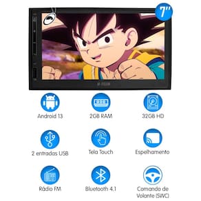 ESPECIFICAÇÃO - MP5 2Din Tela de 7" polegadas Full Touch; - Sistema Operacional Android 13 com processador Quad-core; - 2GB de memória RAM; - 32GB de memória rígida (HD); - Tela de Vidro Capacitiva; - Espelhamento Android e IOS; - Android Auto e Apple Car Play; - Potência de saída 4x60W RMS; - Resolução de Imagem: 1024x600; - 7 Opções de cores nos botões laterais; - Rádio FM; - NÃO possui saída para encosto de cabeça! - 2 Entradas USB; - 1 Entrada para Câmera de Ré; - 1 Entrada para Câmera Frontal; - 1 Entrada de Áudio e Vídeo; - 1 Entrada de Áudio para Subwoofer; - GSP integrado (mapas a parte); - Wifi Integrado; - Compatível com Padrão Chinês e Japonês.