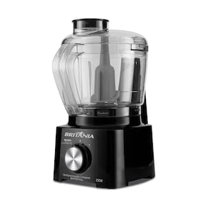 Multiprocessador Compacto Britânia BMP950 Plus 2 em 1 Preto cor: preto voltagem: 110v Multiprocessador Compacto Britânia BMP950 Plus 2 em 1 Movimento Revert Preto O Multiprocessador Compacto Britânia BMP950 Plus é 2 em 1, liquidificador e processador. Ele processa, corta, mistura, pica, moe e liquidifica. Possui Função Revert, a rotação é nos dois sentidos e somado a tecnologia Maxx 6, suas seis lâminas de altíssimo poder de trituração, os alimentos são processados com a maior performance. O Design moderno é mais uma das muitas qualidades que o BMP900 apresenta, compacto e funcional, é tudo que sua cozinha precisa! Características Gerais: - Potência: 250W;- 1 Velocidade;- Função Pulsar;- Função autolimpeza;- 2 em 1: Liquidificador e processador;- Duplo sentido de rotação: Função Revert;- Jarra do Processador com capacidade de 500ml;- Copo do liquidificador com capacidade de 850ml;- Funções: processar, cortar, misturar, picar, moer e liquidificar;- Design moderno e inovador na cor preta;- Design vertical: ocupa menos espaço na cozinha;- Todos os acessórios podem ser lavados na lava-louças;- Copo para liquidificador com alça lateral;- Pés de borracha antideslizantes;- Possui trava de segurança para ambos copos;- Faca cimitarra ou tipo hélice;- Fácil de manusear;- Fácil de limpar;- Porta-fio; Especificações Técnicas: - Altura: 31cm- Largura: 17cm- Profundidade: 21,5cm- Peso: 1,3Kg- Potência: 250W- Consumo: 0,25kW/h- Cor: Preto- Modelo: BMP950 Plus- Fabricante: Britânia Garantia do Fabricante: 1 ano Conteúdo da Embalagem: 01 UN Multiprocessador Compacto Britânia BMP950 Plus 2 em 1 Preto01 UN Manual e certificado de garantia
