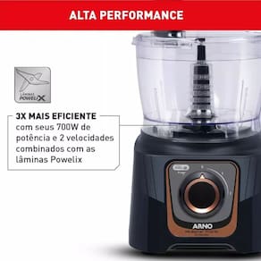 Equipado com um motor de 700W e duas velocidades, o multiprocessador se adapta às