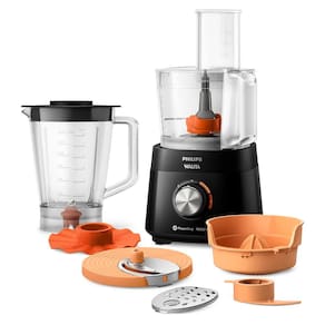 São 1000W com 2 velocidades, mais pulsar. Função siga as cores para selecionar a velocidade pela cor dos acessórios, de forma simples e intuitiva! Jarra do Multiprocessador de 1,5L, com tampa medidora. 6 acessórios: Jarra de liquidificador 2L*, Lâmina para ralar e fatiar, Emulsificador, Espremedor de frutas, Batedor de massas, e Faca processadora PowerChop, exclusiva tecnologia que combina 2 lâminas com ângulos de corte perfeito, muito mais fino e preciso. Assim é possível preparar diversas receitas. Totalmente livre de BPA. Cabo retrátil, compacto e fácil de armazenar. Experimente fazer sempre o seu melhor com Philips Walita!