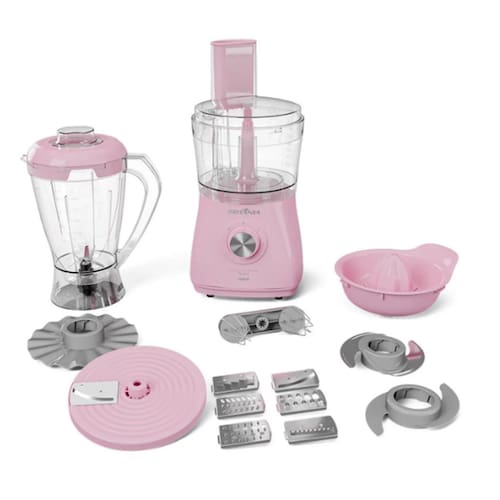 O Multiprocessador Britânia na cor Rosa 220V vai deixar sua cozinha ainda mais completa e funcional. Com 12 funções em um único aparelho, 1000W de potência e 2 velocidades + pulsar, o Multiprocessador Britânia garante que suas receitas sejam preparadas com rapidez e eficiência, seja para picar, triturar, fatiar ou misturar. Os diferentes acessórios que o acompanham, fazem dele um produto completo. As lâminas de corte palito, corte ondulado, ralar fino, granular, fatiar 1,2 mm, ralar e fatiar, juntamente com o disco emulsificador e batedor de massas leves, proporcionam uma infinidade de texturas e cortes dos alimentos. O Multiprocessador Britânia também vem com uma jarra de processador com capacidade de 1,25L, perfeita para preparar quantidades maiores de alimentos. Além disso, acompanha um copo de liquidificador com capacidade total de 2,2L e útil de 1,5L, ideal para receitas líquidas, smoothies, sucos e muito mais. Seja para o preparo de refeições diárias ou de ocasiões especiais, conte com Multiprocessador 12 em 1 Rosa.