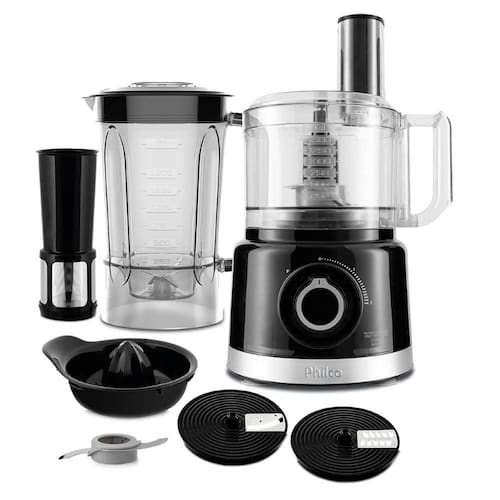 Conteúdo da embalagem: 1 Multiprocessador PMP 1500 Turbo 1000W Philco 5 em 1 Com Copo Liquidificador e Acessórios 220V