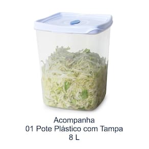 - Recipiente: (acompanha 1 pote plástico com tampa, de 8L)