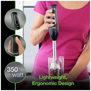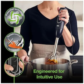 Tecnologia Power Bell Lâminas de aço inoxidável duráveis e eixo de mistura exclusivo em forma de sino para resultados rápidos e mais finos O clique fácil garante que todos os anexos possam ser removidos com um simples clique Turbo boost para maior potência Alça de aperto suave para uso confortável e béquer de 600 mL e acessório de batedor incluído Nota A unidade foi projetada para que o botão turbo seja acionado com um pouco mais de força do que o outro botão livre de BPA