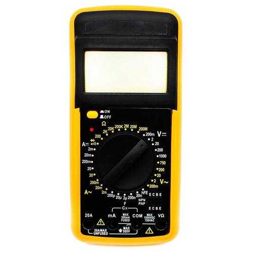 Multiteste multímetro bateria digital ferramenta completa Produto multifuncional com ampla utilização como oficinas em geral, auto elétricos ou até mesmo em residencias, pois é um instrumentos muito na pesquisa de defeitos em redes, aparelhos eletro-eletrônicos, devido à sua simplicidade de uso e portabilidade. Sua característica básica é a conversão dos sinais ógicos de entrada em dados digitais, sendo esta conversão realizada por circuitos eletrônicos e reproduzidas em seu display visor de lcd. Especificação técnica: Detalhes multimetro digital le-1971 com capacimetro - Protegido por fusível 2 pilhas aaa Dimensões 19cm x 9cm x 3,5cm a x l x p Display: 3-/ digits lcd com leitura máxima de 1000 Indicação de polaridade: - mostra automaticamente Indicação de over-range: only 1 displayed Indicação de bateria fraca Range select: manual Temperatura de operação: 0c to 40c, menos 75%rh Temperatura de armazenagem: -10c to 50c, menos 75%rh Função auto power off: desliga o equipamento depois de 15 minutos ocioso Cor preto e laranja Medições: Resistência: escalas= 200r, 2k, 20k, 200k, 2m, 20m, 200m Teste de continuidade: sim = com bip sonoro Teste de diodo: sim Voltagem ac: escalas = 2v, 20v, 200v, 750v Voltagem dc: escalas = 2v, 20v, 200v, 1000v Teste de transistor: sim Corrente ac: escalas = 2m, 20m, 200m, 20a Corrente dc: escalas = 2m, 20m, 200m, 20a Capacímetro: escalas = 20n, 200n, 2u, 20u, 200u Conteúdo da embalagem: 01 multímetro digital; 01 manual em português 01 par guia de teste; 02 pilhas aaa;