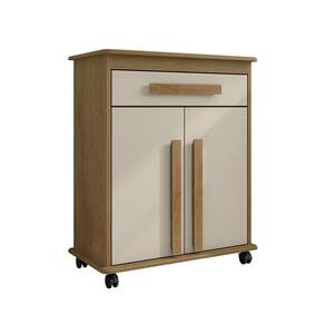As portas possuem dobradiças metálicas, conta com uma prateleira interna.
