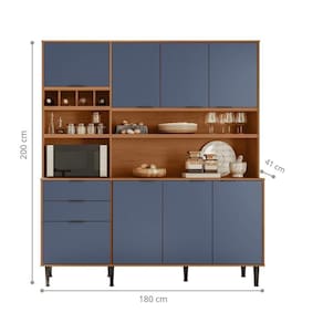 COMPRIMENTO DO PRODUTO (CM): 41 cm | PESO DO PRODUTO (KG): 96 | QUANTIDADE DE GAVETAS: 3 | QUANTIDADE DE NICHOS: 8 | GARANTIA DO FABRICANTE: 3 | INSTRUÃ?Ã-ES/CUIDADOS: Limpar com pano macio e seco, nÃo utilizar produtos abrasivos. | PRODUTO: KIT COZINHA | PESO DO PRODUTO COM EMBALAGEM (KG): 96 | QUANTIDADE DE PORTAS: 7 | MARCA: CASAH | COR PREDOMINANTE: JEQUITIBA/AZUL LORD | COMPRIMENTO DO PRODUTO COM EMBALAGEM (CM): 147 | PRODUTO PRECISA DE MONTAGEM?: Sim, a montagem à facil mas sugerimos a contrataÃÃo de um montador profissional para a montagem do produto. NÃo nos responsabilizamos por danos causados no ato da montagem. | DESCRIÃ?Ã?O DO TAMANHO: 200X180X41 | LARGURA DO PRODUTO COM EMBALAGEM (CM): 84 | ESTADO DE ORIGEM: SP | CORES DO PRODUTO (FILTRO DE CORES): JEQUITIBA/AZUL LORD | MATERIAL PRINCIPAL: MDP | QUANTIDADE DE CAIXAS NA EMBALAGEM: 3 | LARGURA DO PRODUTO (CM): 180 cm | ALTURA DO PRODUTO COM EMBALAGEM (CM): 26 | ALTURA DO PRODUTO (CM): 200 cm | REQUER MONTAGEM?: SIM | inclui manual de montagem?: sim