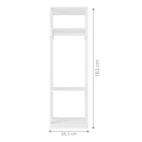 Produto com cabideiro de alumínio e prateleiras. Versátil e se adapta a vários ambientes.