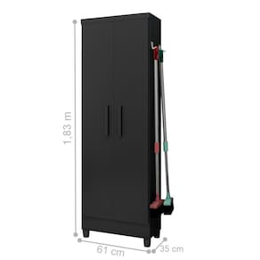 Possui 5 prateleiras que pode ser montado de diversas formas, 2 portas, com suporte esterno para penturar vassouras, rodos ou o que você preferir,