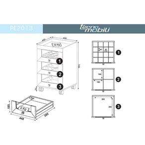 Multiuso Quarto Carrinho De Maquiagem Pe2013 C/ 3 Portas E Rodízios Branco - Tecno Mobili