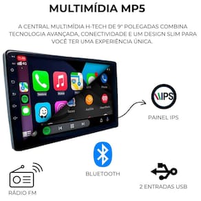 Multmídia slim 9 pol tela de vidro full touch espelhamento carplay android auto bluetooth ht-9125ca 7893595569020