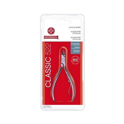 Mundial 522 Clássico Alicate De Cutícula DESCRIÇÃO: O alicate de cutícula preferido das manicures.AÇÃO/ATIVOS: Lâminas afiadas. Corte preciso e alta durabilidade. Mola resistente com redutor de atrito. Cabo texturizado: não desliza e oferece mais segurança ao manuseio. Aço carbono niquelado. Embalagem: Blister.MODO DE USAR: Umedeça as unhas para facilitar o corte e com o Alicate para unhas Merheje Professional corte-as acompanhando seu formato natural. Sua afiação especial garante um corte rápido e preciso.ESTE ANÚNCIO CONTÉM: 01 Mundial 522 Clássico Alicate De CutículaMundial 522 ClÃssico Alicate de CutÃcula