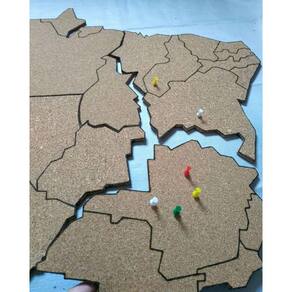 Mural de cortiça mapa do brasil, para você inovar qualquer ambiente e exibir suas viagens, fotos , avisos e lembretes. feito em cortiça de 6mm, garantindo firmeza a peça e melhor aderência aos alfinetes. possui tamanho aproximado 90cm. com divisão dos estados do brasil. para fixar fita dupla face tipo espuma no verso. obs, peça vai desmontada, dividida em 5 peças, as regiões do brasil. Necessário montar na parede. acompanha alfinetes para cortiça