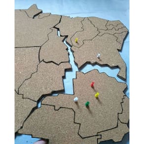 Mural de cortiça mapa do brasil, para você inovar qualquer ambiente e exibir suas viagens, fotos , avisos e lembretes. feito em cortiça de 6mm, garantindo firmeza a peça e melhor aderência aos alfinetes. possui tamanho aproximado 90cm. com divisão dos estados do brasil. para fixar fita dupla face tipo espuma no verso. obs, peça vai desmontada, dividida em 5 peças, as regiões do brasil. Necessário montar na parede. acompanha alfinetes para cortiça Marca: Nivel Nerd