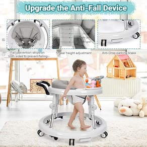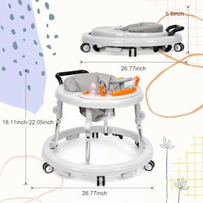 - [Armazenamento dobrável]: os andadores para bebês podem ser facilmente dobrados e instalados sem ferramentas. Ao mesmo tempo, o andador portátil para bebês é pequeno e fácil de transportar e armazenar. Tamanho da expansão: 25,2"(L)* 18,11"(W) *"15,75-18,5" (H) para crianças de 7 a 18 meses de idade. Tamanho dobrado: 25,2 “(L)* 3,94" (H). Por favor, confirme a altura do bebê antes da compra. Ele pode suportar um bebê de 30 libras.