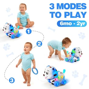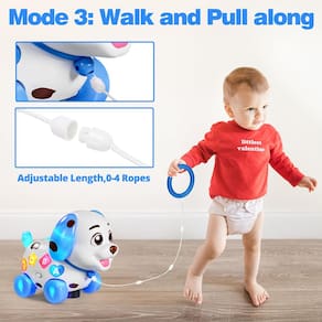 Presentes brinquedo menino de um ano de idade presente de aniversário menina de um ano brinquedo bebê menino 1 ano presentes para 1 ano brinquedo menina - Brinquedo musical 3 em 1: 3 modos para brincar, incentivando o bebê a se sentar, engatinhar e andar. Musical para crianças de 6 a 12 meses, brinquedos de engatinhar para crianças de 9 a 12 meses, brinquedos de caminhada para crianças de 12 a 18 meses. - Brinquedo de bebê sentado para engatinhar de 6 a 12 meses: o bebê de mais de 6 meses será atraído por várias músicas e luzes coloridas ou observando o filhote se movimentando. Bebês de mais de 9 meses adoram engatinhar e pegar o filhote. Equipado com rodas universais, o brinquedo infantil pode evitar obstáculos. - Brinquedo para bebês andando de 12 a 18 meses: Crianças que começam a andar ou correr adoram puxar o cachorrinho fofo em ambientes internos e externos. Equipado com 4 cordas, o comprimento pode ser ajustado de acordo com a altura do seu filho. - Brinquedo educativo bilíngue para crianças de mais de 1 ano: 7 botões grandes coloridos, fácil para crianças de 6 meses pressionarem. Aprender ABC, 123 e 9 músicas, enquanto desenvolve habilidades motoras finas. Modos inglês e espanhol, ótima opção para família bilíngue. Brinquedo infantil de desenvolvimento precoce para meninos e meninas de 6, 7, 8, 9, 10, 12, 18 meses. - Presentes para bebês meninos: Vem em uma bela caixa, presente ideal para bebê de Páscoa, presente de Natal para 6-9-12-18 meses, presentes de primeiro aniversário para meninos de 1 ano, presente de 1º aniversário para menina, presente de Natal para meninos de 1 ano ou mais, presentes de aniversário para menino de um ano de idade. - São necessárias 3 pilhas AA, não incluídas.