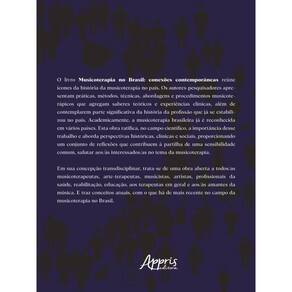 O livro Musicoterapia no Brasil: conexões contemporâneas reúne ícones da história da musicoterapia no país. Os autores-pesquisadores apresentam práticas, métodos, técnicas, abordagens e procedimentos musicoterápicos que agregam saberes teóricos e experiências clínicas, além de contemplarem parte significativa da história da profissão que já se estabilizou no país. Academicamente, a musicoterapia brasileira já é reconhecida em vários países. Esta obra ratifica, no campo científico, a importância desse trabalho e aborda perspectivas históricas, clínicas e sociais, proporcionando um conjunto de reflexões que contribuem à partilha de uma sensibilidade comum, salutar aos/às interessados/as no tema da musicoterapia. Em sua concepção transdisciplinar, trata-se de uma obra aberta a todos/as musicoterapeutas, arte-terapeutas, musicistas, artistas, profissionais da saúde, reabilitação, educação, aos terapeutas em geral e aos/às amantes da música. E traz conceitos atuais, com o que há de mais recente no campo da musicoterapia no Brasil.