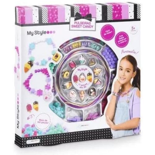 My Style Pulseiras Sweet Candy Multikids, você pode criar pulseiras incríveis para incrementar o seu look e ficar mais estilosa ainda. Deixe sua imaginação fluir e monte conforme o seu gosto e estilo, a criação e o resultado final dependem de você, com muitos acessórios e itens você pode juntar com suas amigas e fazer a pulseira da amizade ou apenas combinar as pulseiras. É muita diversão enquanto você monta sua pulseira.
