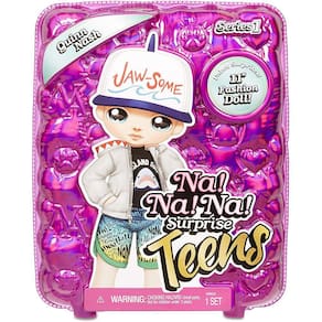 Bem-vindos aos estilos de vida da pelúcia e glamourosas. Temos um ponto fraco para uma boa moda, então se estamos andando com nossos amigos ou andando no tapete felpudo, sempre estamos no nosso melhor. Porque somos selvagens pelo estilo. Na Na Na Surprise Teens são bonecas de moda macias de 11" com tanta personalidade e estilo. Quinn Nash é inspirada por um tubarão. Ele tem cabelos legais, prateados e detalhes de rosto e roupas impressos. Ele vem com uma incrível experiência de unboxing. Abra o pacote para revelar a boneca incrível dentro. Em seguida, estoure os balões para desboxar suas modas e acessórios. Quinn Nash é tudo sobre takin 'uma grande mordida fora da vida. Ele está pronto para a praia com um capuz, sunga e camiseta de surfe. Ele também tem um chapéu de tubarão e tênis de tubarão. Detalhes impressos incluem suas meias de tubarão e curativos em seu joelho. É um presente perfeito! Ele também inclui uma etiqueta com seu nome, aniversário e um pouco sobre ele. Colete todas as 5 bonecas de moda teens macias.