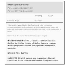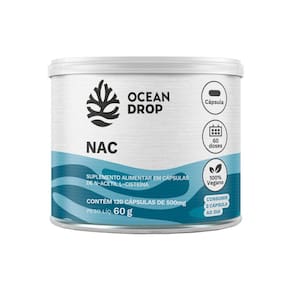 Nac 120 Cápsulas - Ocean Drop Composição do Anúncio 1x- nac 120 Cápsulas - Ocean Drop Descrição do Anúncio A N-, conhecida como NAC, é um suplemento valorizado por suas múltiplas ações. Como precursora da glutationa, uma substância antioxidante, estudos revelam que o NAC pode ajudar na neutralização de radicais livres e na redução do oxidativo. Radicais livres são moléculas instáveis que podem causar danos às células, contribuindo para o envelhecimento precoce e para o desenvolvimento de doenças crônicas. Ao estimular a produção de glutationa, o NAC pode contribuir para a integridade das células, ajudando a manter o equilíbrio redox. O NAC N- é obtido a partir da cisteína, um aminoácido que desempenha um papel fundamental na síntese de proteínas. A como , se destaca por sua ação mucolítica, originalmente utilizado na forma de xarope para condições que envolvem produção excessiva de muco e problemas respiratórios. Já o suplemento de N- NAC , se destaca por sua atuação como precursor da glutationa, que é uma substância que age como antioxidante. Quando o corpo carece de antioxidantes, os radicais livres podem danificar as células saudáveis. Em resumo, o NAC é uma substância versátil que desempenha um papel relevante, graças à sua origem na cisteína e sua contribuição como precursor da glutationa. Quem pode consumir o NAC O n- NAC pode ser consumido por adultos que buscam os seus benefícios. Trata-se de um suplemento que é frequentemente procurado pela ação antioxidante e condições que envolvem excesso de muco. No entanto, há algumas exceções e precauções: Pessoas com asma: pessoas com asma devem consultar um médico antes de usar. Interações medicamentosas: o NAC pode interagir com medicamentos, especialmente com nitroglicerina e outros vasodilatadores. Condições de saúde específicas: pessoas com problemas renais ou hepáticos devem usar o NAC sob supervisão médica. Alergias ao NAC: indivíduos com alergias conhecidas ao NAC ou seus componentes não devem tomar esse suplemento. Quando e como tomar o NAC O momento e a forma de tomar N- NAC podem variar com base nas necessidades individuais e objetivos de saúde. Aqui estão algumas instruções gerais para considerar ao tomar NAC: Dosagem recomendada: a dosagem recomendada de nac pode variar, geralmente oscilando entre 600 mg a 1200 mg por dia; Forma de suplemento: o NAC geralmente está disponível em forma de cápsulas ou comprimidos; Com ou sem alimentos: o NAC pode ser tomado com ou sem alimentos, dependendo da preferência pessoal. Algumas pessoas preferem tomar com uma refeição para evitar desconforto estomacal, enquanto outras o tomam com o estômago vazio; Horário: o NAC pode ser dividido em doses ao longo do dia ou tomado de uma vez, dependendo das necessidades individuais. Algumas pessoas preferem tomar uma dose pela manhã e outra à noite; Objetivos de saúde: o momento de tomar NAC pode variar com base nos objetivos de saúde; Consulte um profissional: sempre é aconselhável consultar um profissional de saúde antes de iniciar a suplementação com NAC . Eles podem fornecer orientações específicas com base em suas necessidades individuais e estado de saúde. Lembrando que a dosagem e o momento de tomar NAC podem variar, e é importante seguir as orientações específicas fornecidas pelo seu profissional de saúde ou fabricante do suplemento. Marca: Não Informado
