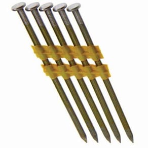 — haste lisa, não galvanizados, pregos de tira agrupada de plástico — As aplicações primárias incluem molduras, revestimentos, contrapisos e telhados, onde a proteção contra corrosão não é necessária.