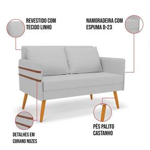 Que tal a Namoradeira Mari? Imagine-se utilizando esse produto e usufruindo de todos os benefícios que ela oferece. Usar essa Namoradeira é bem simples! Pode ser utilizada para evidenciar e enriquecer o seu ambiente, descansar depois de um dia longo de trabalho, ver aquela série favorita ou simplesmente ler seu livro predileto. Sua estrutura é confeccionada em madeira de eucalipto proveniente de reflorestamento, suportando em média até 120 Kg, possuí Pés Palito Castanho, garantindo uma maior resistência e durabilidade ao produto, o estofamento do assento e encosto é composto de espuma D-23, revestido em tecido Linho. Então, se a sua dificuldade é a otimização de espaço, esta namoradeira além de confortável e sofisticada, traz toda a funcionalidade que você precisa. Apenas algumas unidades estão disponíveis, separe o sua Namoradeira Mari antes que acabem!