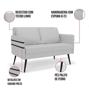 Que tal a Namoradeira Mari? Imagine-se utilizando esse produto e usufruindo de todos os benefícios que ela oferece. Usar essa Namoradeira é bem simples! Pode ser utilizada para evidenciar e enriquecer o seu ambiente, descansar depois de um dia longo de trabalho, ver aquela série favorita ou simplesmente ler seu livro predileto. Sua estrutura é confeccionada em madeira de eucalipto proveniente de reflorestamento, suportando em média até 120 Kg, possuí Pés Palito de Ferro, garantindo uma maior resistência e durabilidade ao produto, o estofamento do assento e encosto é composto de espuma D-23, revestido em tecido Linho. Então, se a sua dificuldade é a otimização de espaço, esta namoradeira além de confortável e sofisticada, traz toda a funcionalidade que você precisa. Apenas algumas unidades estão disponíveis, separe o sua Namoradeira Mari antes que acabem! Dimensões da Namoradeira: Altura total: 82 cm Largura total: 110 cm Profundidade total: 74 cm Altura do encosto: 35 cm Largura do assento: 104 cm Profundidade do assento: 57 cm Altura do chão ao assento: 47 cm Espessura do assento: 22 cm Altura do chão ao braço: 46 cm Altura interna do braço: 19 cm Tamanho dos pés: 25 cm Espessura do braço: 4 cm Peso: 20 kg Dimensões da Almofada: Altura total: 34 cm Largura total: 51 cm Profundidade total: 20 cm Peso: 0,3 kg Especificações do Produto Estrutura: Madeira Eucalipto Espuma: D-23 Tecido: Linho Tipo de pés: Pés Palito de Ferro Peso suportado: Até 120 Kg Garantia: 90 dias contra defeito de fabricação Montagem: O produto vai montado, apenas rosquear os pés Instruções de limpeza: Utilizar um pano limpo e levemente úmido Você irá receber: 01 Volume com 01 Namoradeira Observações Relevantes - Todos os produtos vão embalados com total segurança; - As cores dos produtos podem sofrer alterações dependendo do seu monitor; - Para futuras compras, não garantimos a mesma tonalidade de cor, pois existe variação a cada lote do fabricante do tecido; - As imagens são meramente ilustrativas, não acompanham objetos de decoração e eletros; - Confira as dimensões do produto no momento da compra e certifique-se de que passará normalmente por escadas, elevadores, portas e corredores; - Importante: Por se tratar de estofado as medidas podem ter uma pequena variação em até 3 cm; - Não nos responsabilizamos no ato da entrega por montagens, desmontagens, instalações de produtos; - Não nos responsabilizamos no ato da entrega por subir escadas, elevadores, nem utilização de guinchos ou equipamentos similares para acesso a pisos superiores em apartamentos; - A entrega do produto é realizada em todo território nacional, até onde as rodovias alcançam, entregas fluviais ou aéreas devem ser cotadas a parte; - Observando as orientações acima, evita-se futuros desagrados ou imprevistos com a entrega do produto. Havendo despesas adicionais, serão de responsabilidade do cliente;