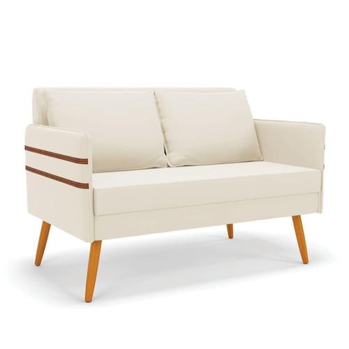 Namoradeira 02 Lugares Mari Veludo Pés Palito Castanho - D'rossi Cor Bege