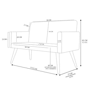 Seu estofado em tecido linho garante um toque macio e sofisticado, enquanto a espuma D-23 de alta densidade proporciona o conforto ideal para seu dia a dia. A estrutura em madeira de eucalipto de reflorestamento oferecer excelente durabilidade. As percintas elásticas no assento trazem ainda mais conforto. Além disso, conta com base em madeira e pés palito, que trazem charme retrô ao ambiente deixando ainda mais elegante.