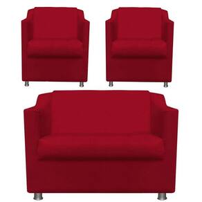 Namoradeira + 2 Polt. Bia P/ Sala de Estar Consultório Clinica Hospital Recepção Suede - Vermelho