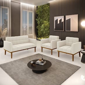 O Sofá Namoradeira e 2 Poltronas Elisa é uma mobília que combina elegância, conforto e durabilidade. Ele tem um design retrô e sofisticado, com Base de Madeira Fixa Castanho e revestimento em tecido Bouclê Bege, que harmonizam com qualquer ambiente. Ele é ideal para sala de estar, recepções, escritórios, cozinhas ou qualquer outro espaço que você queira decorar com estilo e bom gosto. Ele tem uma estrutura em madeira de reflorestamento eucalipto, que garante a resistência e a sustentabilidade do produto. Ele suporta até 180 kg de peso, podendo ser utilizada por pessoas de diferentes biotipos. Ele tem um acabamento reforçado e espuma de qualidade D23, que oferece maciez e aconchego. Ele contém detalhes de costura no encosto e assento, resultando em um acabamento impecável, conferindo muito mais valor e elegância ao produto. O Sofá Namoradeira e 2 Poltronas Elisa é um móvel de alta qualidade, beleza e funcionalidade. Ele é fácil de transportar, pois tem um peso leve e um tamanho compacto. O Sofá Namoradeira e 2 Poltronas Elisa é um produto que vai fazer a diferença na sua decoração e no seu bem-estar. Ele vai trazer charme, conforto e durabilidade para o seu ambiente. Aproveite essa oferta e leve para casa um Sofá Namoradeira e 2 Poltronas de qualidade por um preço incrível. Essa é a sua chance de ter um Sofá Namoradeira e 2 Poltronas maravilhoso por um preço imperdível. Corra e garanta o seu antes que acabe o estoque!