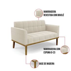 Namoradeira 2 Poltronas Base Madeira Fixa Cast Elisa Bouclê Bege D03 - D`Rossi