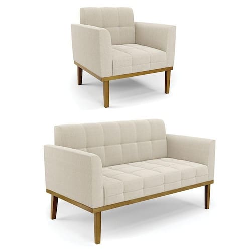O Sofá Namoradeira e 2 Poltronas Elisa é uma mobília que combina elegância, conforto e durabilidade. Ele tem um design retrô e sofisticado, com Base de Madeira Fixa Castanho e revestimento em tecido Bouclê Bege, que harmonizam com qualquer ambiente. Ele é ideal para sala de estar, recepções, escritórios, cozinhas ou qualquer outro espaço que você queira decorar com estilo e bom gosto. Ele tem uma estrutura em madeira de reflorestamento eucalipto, que garante a resistência e a sustentabilidade do produto. Ele suporta até 180 kg de peso, podendo ser utilizada por pessoas de diferentes biotipos. Ele tem um acabamento reforçado e espuma de qualidade D23, que oferece maciez e aconchego. Ele contém detalhes de costura no encosto e assento, resultando em um acabamento impecável, conferindo muito mais valor e elegância ao produto. O Sofá Namoradeira e 2 Poltronas Elisa é um móvel de alta qualidade, beleza e funcionalidade. Ele é fácil de transportar, pois tem um peso leve e um tamanho compacto. O Sofá Namoradeira e 2 Poltronas Elisa é um produto que vai fazer a diferença na sua decoração e no seu bem-estar. Ele vai trazer charme, conforto e durabilidade para o seu ambiente. Aproveite essa oferta e leve para casa um Sofá Namoradeira e 2 Poltronas de qualidade por um preço incrível. Essa é a sua chance de ter um Sofá Namoradeira e 2 Poltronas maravilhoso por um preço imperdível. Corra e garanta o seu antes que acabe o estoque!