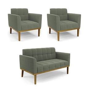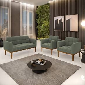 O Sofá Namoradeira e 2 Poltronas Elisa é uma mobília que combina elegância, conforto e durabilidade. Ele tem um design retrô e sofisticado, com Base de Madeira Fixa Castanho e revestimento em tecido Bouclê Menta, que harmonizam com qualquer ambiente. Ele é ideal para sala de estar, recepções, escritórios, cozinhas ou qualquer outro espaço que você queira decorar com estilo e bom gosto. Ele tem uma estrutura em madeira de reflorestamento eucalipto, que garante a resistência e a sustentabilidade do produto. Ele suporta até 180 kg de peso, podendo ser utilizada por pessoas de diferentes biotipos. Ele tem um acabamento reforçado e espuma de qualidade D23, que oferece maciez e aconchego. Ele contém detalhes de costura no encosto e assento, resultando em um acabamento impecável, conferindo muito mais valor e elegância ao produto. O Sofá Namoradeira e 2 Poltronas Elisa é um móvel de alta qualidade, beleza e funcionalidade. Ele é fácil de transportar, pois tem um peso leve e um tamanho compacto. O Sofá Namoradeira e 2 Poltronas Elisa é um produto que vai fazer a diferença na sua decoração e no seu bem-estar. Ele vai trazer charme, conforto e durabilidade para o seu ambiente. Aproveite essa oferta e leve para casa um Sofá Namoradeira e 2 Poltronas de qualidade por um preço incrível. Essa é a sua chance de ter um Sofá Namoradeira e 2 Poltronas maravilhoso por um preço imperdível. Corra e garanta o seu antes que acabe o estoque!