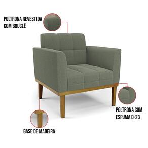 Namoradeira 2 Poltronas Base Madeira Fixa Cast Elisa Bouclê Menta D03 - D`Rossi - Verde Cinza