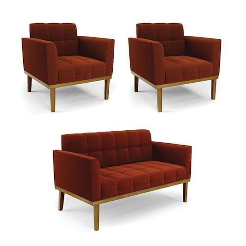 Você irá Receber: 01 Sofá Namoradeira e 02 Poltronas - Entregue em: 03 Volumes