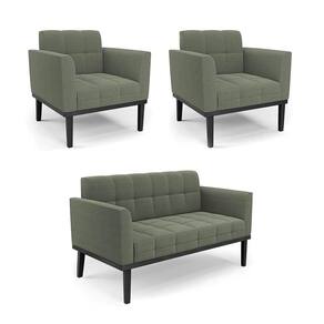 O Sofá Namoradeira e 2 Poltronas Elisa é uma mobília que combina elegância, conforto e durabilidade. Ele tem um design retrô e sofisticado, com Base de Madeira Fixa Preto e revestimento em tecido Bouclê Menta, que harmonizam com qualquer ambiente. Ele é ideal para sala de estar, recepções, escritórios, cozinhas ou qualquer outro espaço que você queira decorar com estilo e bom gosto. Ele tem uma estrutura em madeira de reflorestamento eucalipto, que garante a resistência e a sustentabilidade do produto. Ele suporta até 180 kg de peso, podendo ser utilizada por pessoas de diferentes biotipos. Ele tem um acabamento reforçado e espuma de qualidade D23, que oferece maciez e aconchego. Ele contém detalhes de costura no encosto e assento, resultando em um acabamento impecável, conferindo muito mais valor e elegância ao produto. O Sofá Namoradeira e 2 Poltronas Elisa é um móvel de alta qualidade, beleza e funcionalidade. Ele é fácil de transportar, pois tem um peso leve e um tamanho compacto. O Sofá Namoradeira e 2 Poltronas Elisa é um produto que vai fazer a diferença na sua decoração e no seu bem-estar. Ele vai trazer charme, conforto e durabilidade para o seu ambiente. Aproveite essa oferta e leve para casa um Sofá Namoradeira e 2 Poltronas de qualidade por um preço incrível. Essa é a sua chance de ter um Sofá Namoradeira e 2 Poltronas maravilhoso por um preço imperdível. Corra e garanta o seu antes que acabe o estoque!