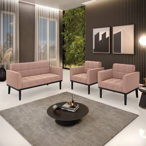 O Sofá Namoradeira e 2 Poltronas Elisa é uma mobília que combina elegância, conforto e durabilidade. Ele tem um design retrô e sofisticado, com Base de Madeira Fixa Preto e revestimento em tecido Bouclê Rosê, que harmonizam com qualquer ambiente. Ele é ideal para sala de estar, recepções, escritórios, cozinhas ou qualquer outro espaço que você queira decorar com estilo e bom gosto. Ele tem uma estrutura em madeira de reflorestamento eucalipto, que garante a resistência e a sustentabilidade do produto. Ele suporta até 180 kg de peso, podendo ser utilizada por pessoas de diferentes biotipos. Ele tem um acabamento reforçado e espuma de qualidade D23, que oferece maciez e aconchego. Ele contém detalhes de costura no encosto e assento, resultando em um acabamento impecável, conferindo muito mais valor e elegância ao produto. O Sofá Namoradeira e 2 Poltronas Elisa é um móvel de alta qualidade, beleza e funcionalidade. Ele é fácil de transportar, pois tem um peso leve e um tamanho compacto. O Sofá Namoradeira e 2 Poltronas Elisa é um produto que vai fazer a diferença na sua decoração e no seu bem-estar. Ele vai trazer charme, conforto e durabilidade para o seu ambiente. Aproveite essa oferta e leve para casa um Sofá Namoradeira e 2 Poltronas de qualidade por um preço incrível. Essa é a sua chance de ter um Sofá Namoradeira e 2 Poltronas maravilhoso por um preço imperdível. Corra e garanta o seu antes que acabe o estoque!