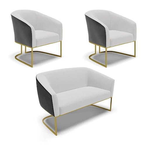 Você irá Receber: 01 Sofá Namoradeira e 02 Poltronas - Entregue em: 03 Volumes