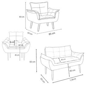 Namoradeira + 2 Poltronas Opalla Decorativa Reforçada Recepção Sala De Estar Suede - Bege